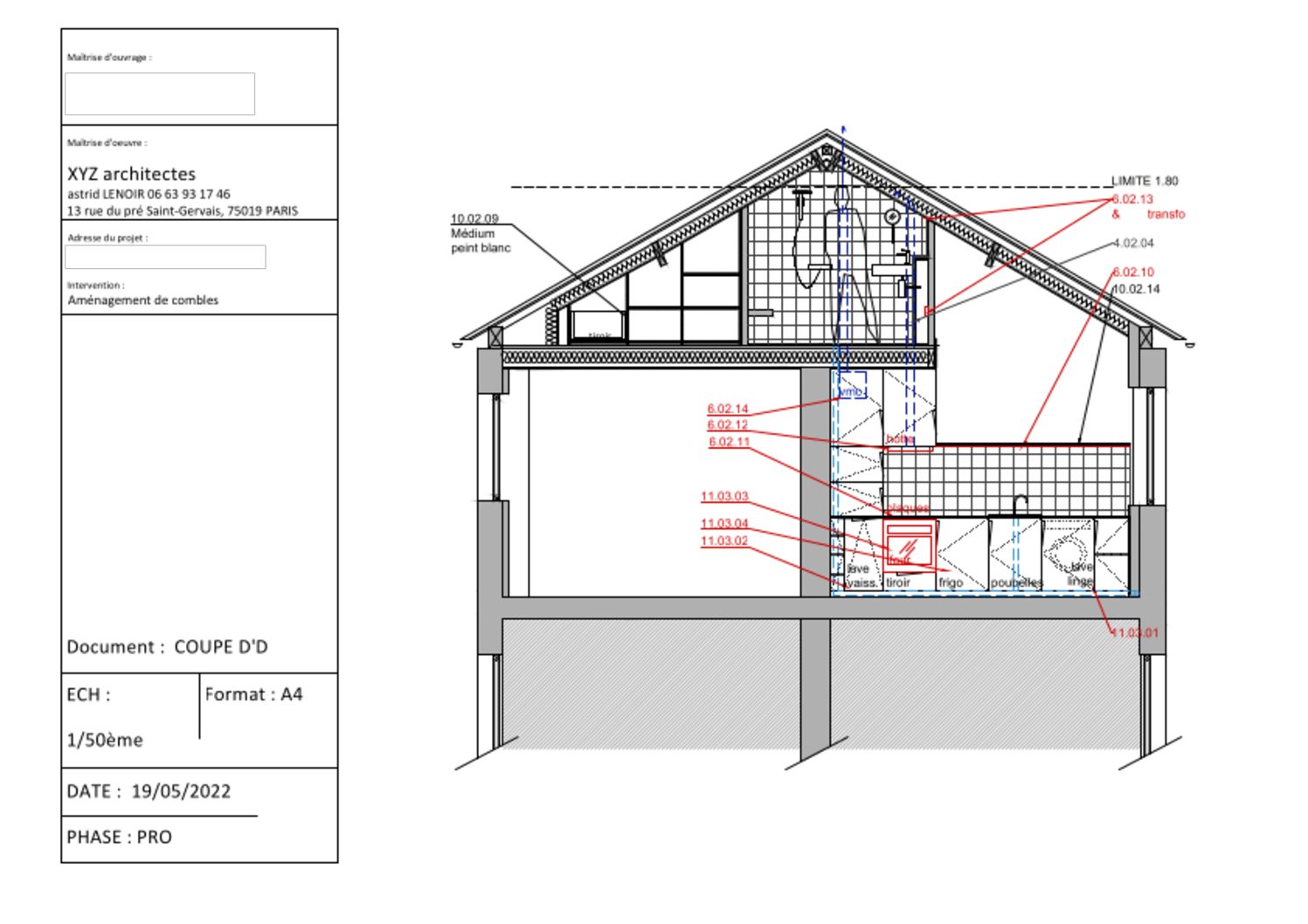 - Programme : rénovation complète d’un appartement, création d’une trémie d’escalier, aménagement de combles et mise en place de deux fenêtre de toit.