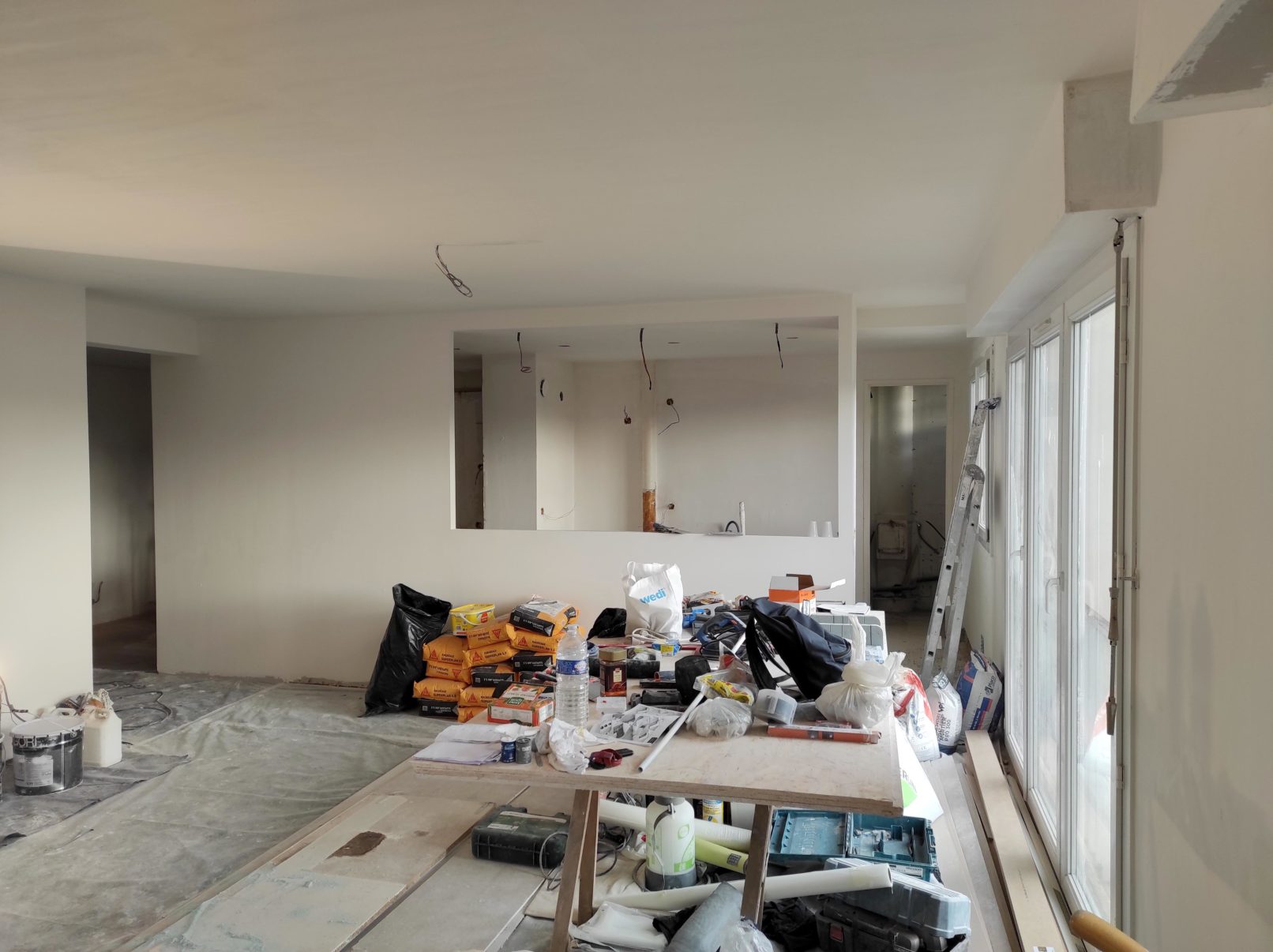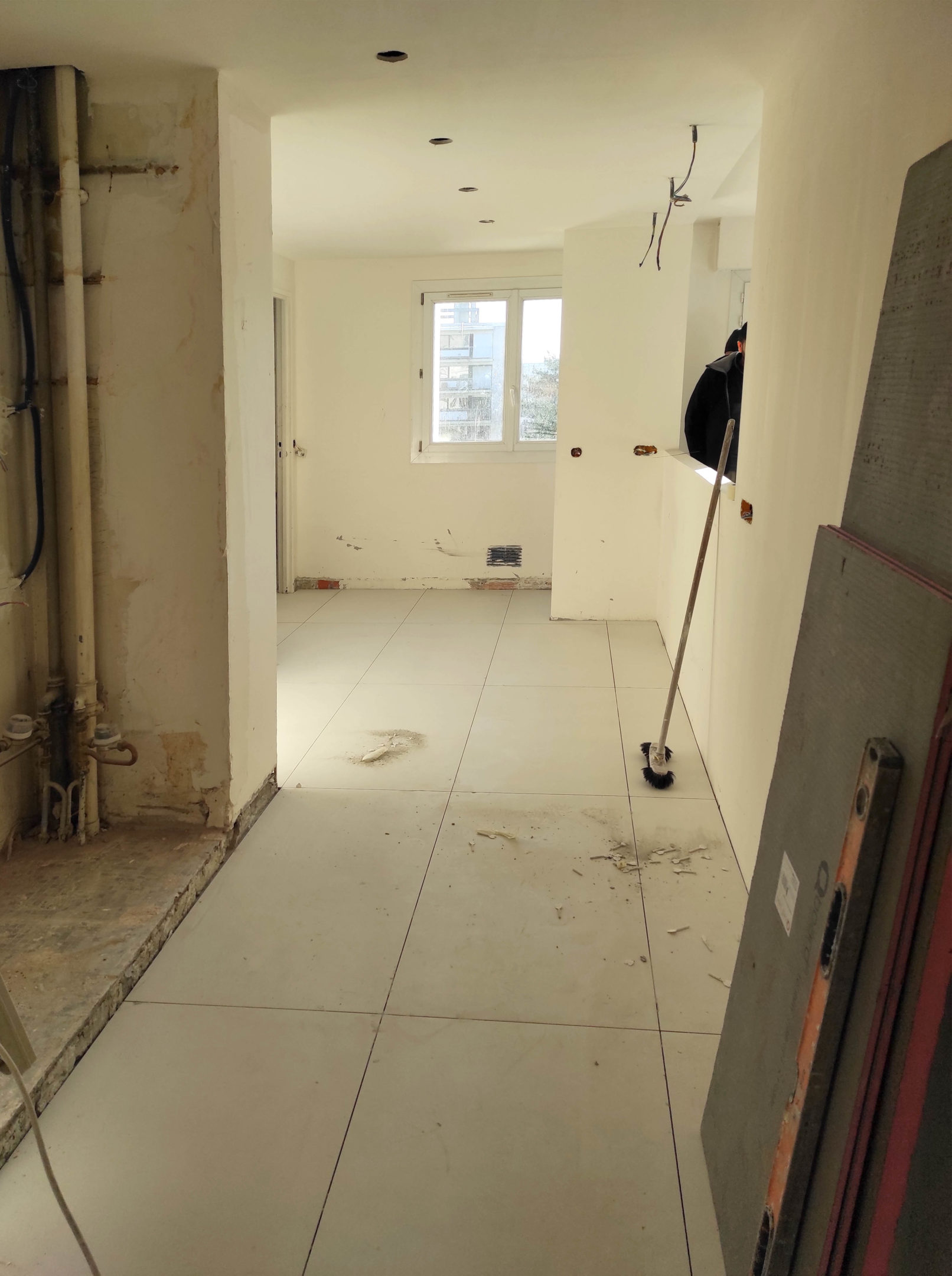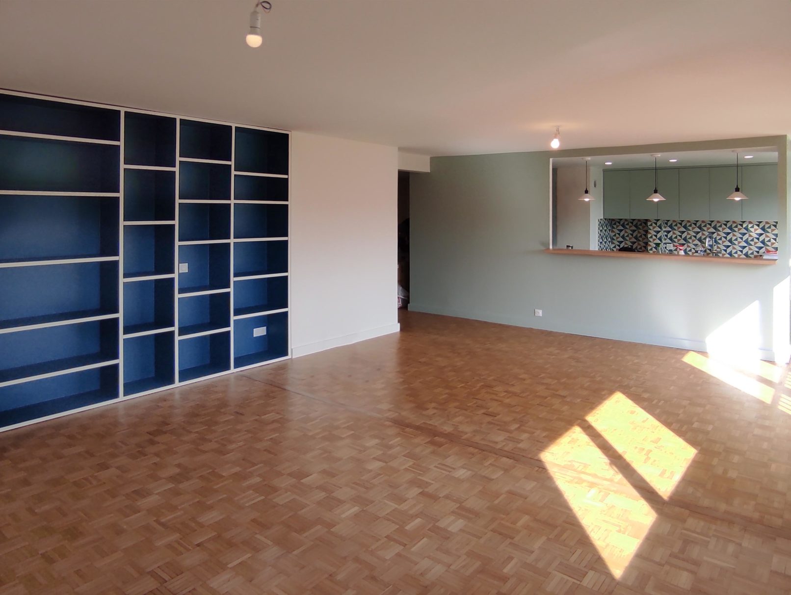 Mise aux normes électriques, réorganisation et rénovation des espaces d’un appartement à Montreuil.