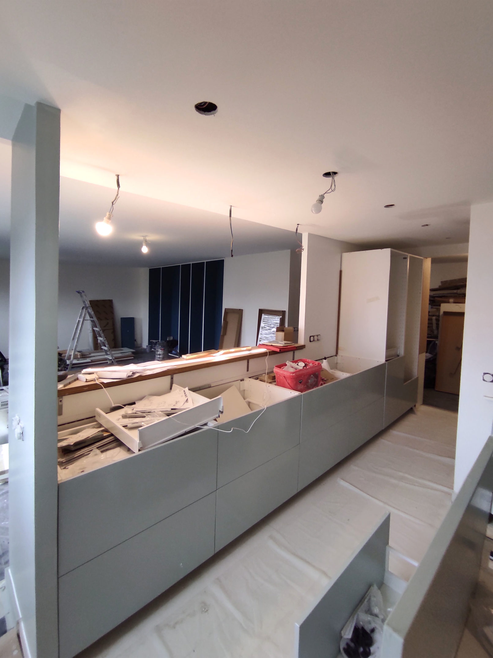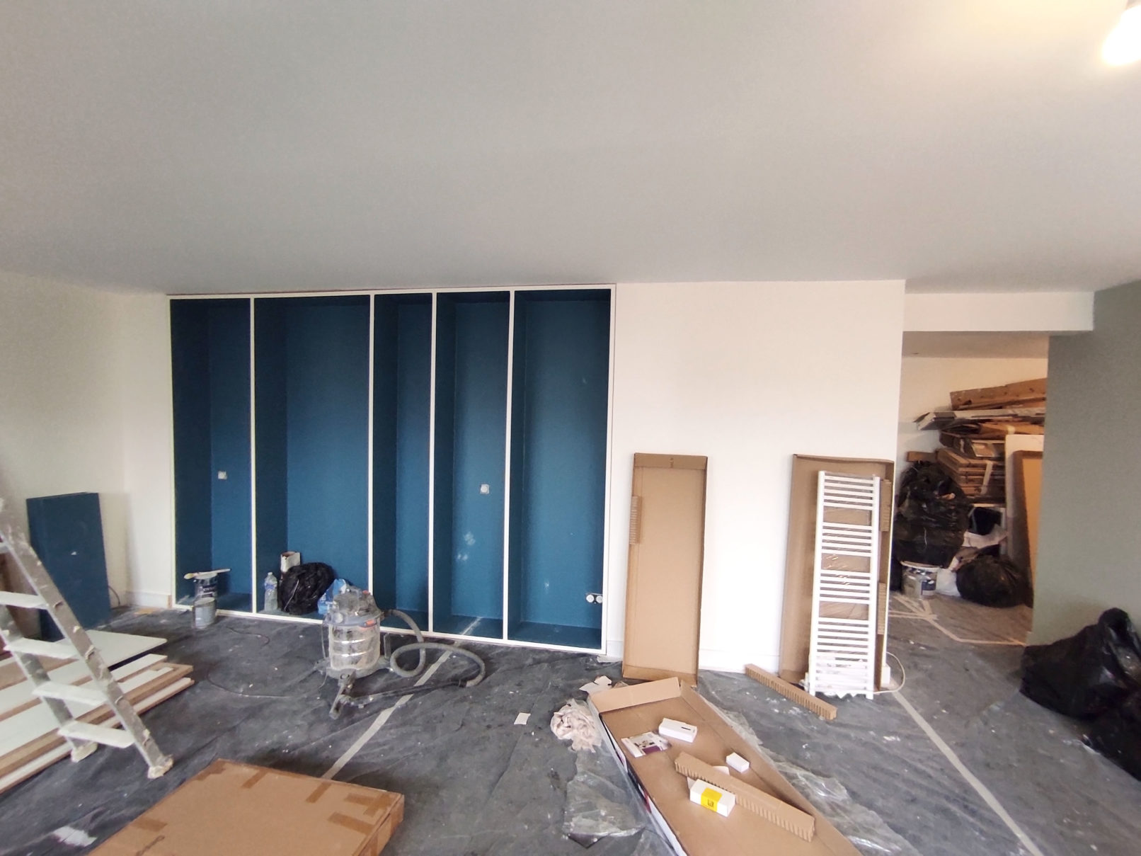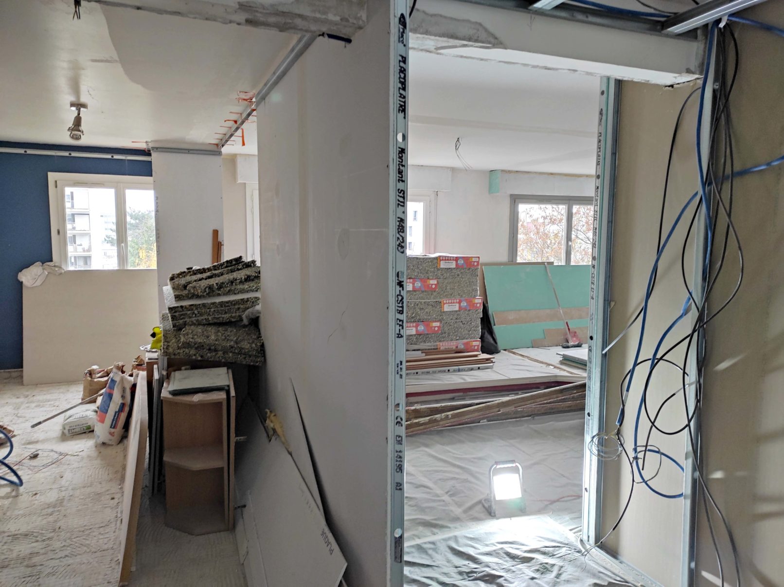 Mise aux normes électriques, réorganisation et rénovation des espaces d’un appartement à Montreuil.