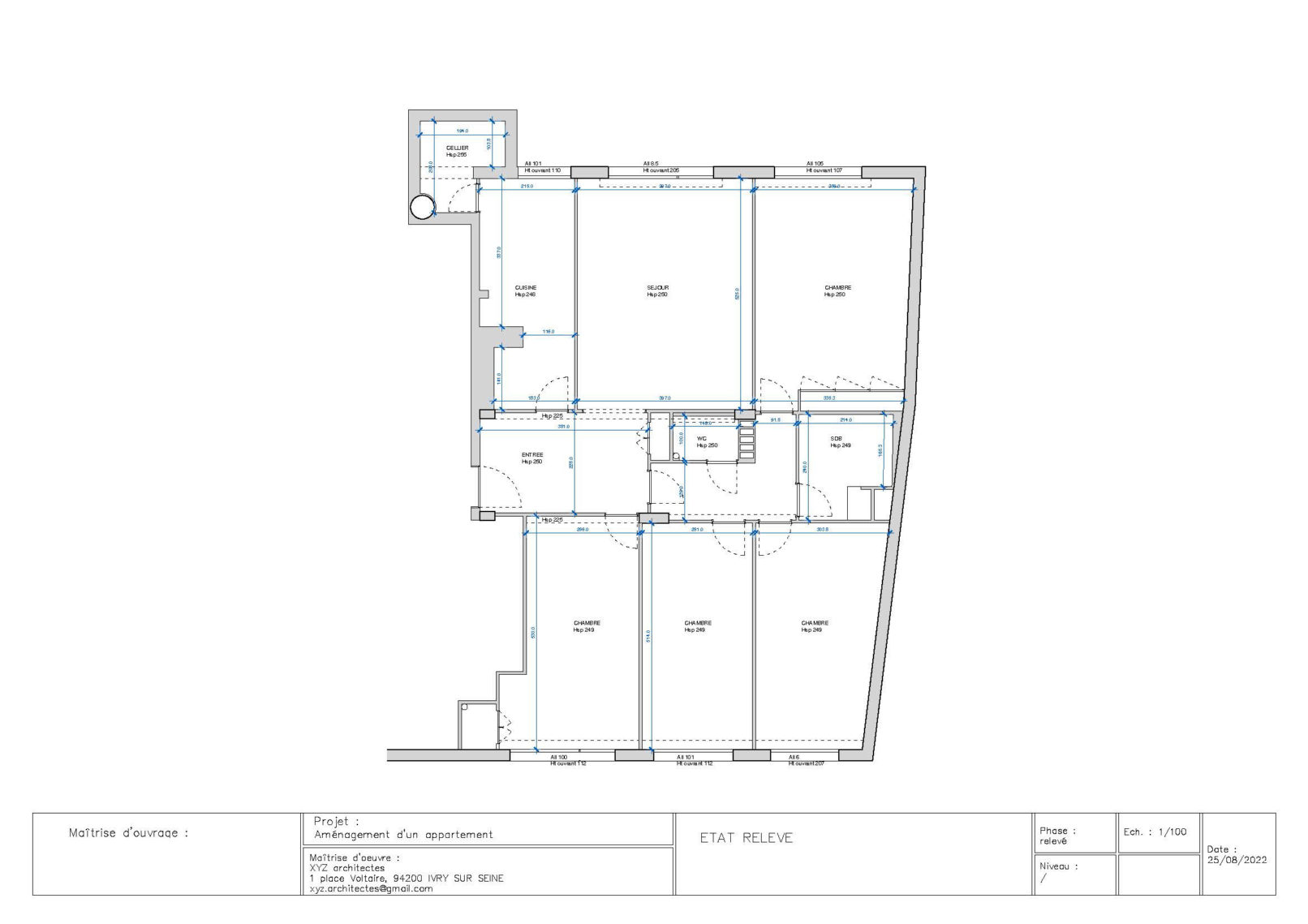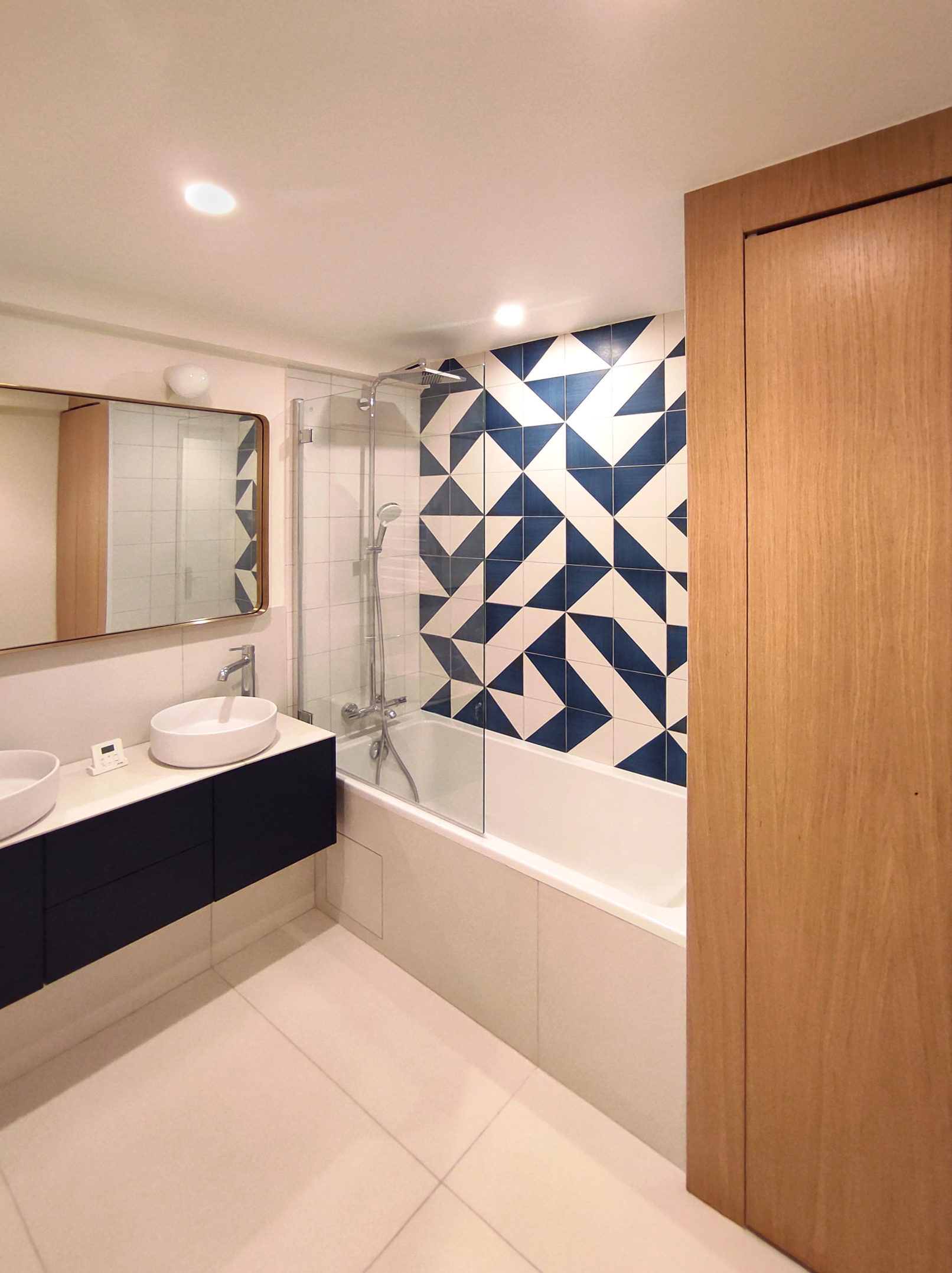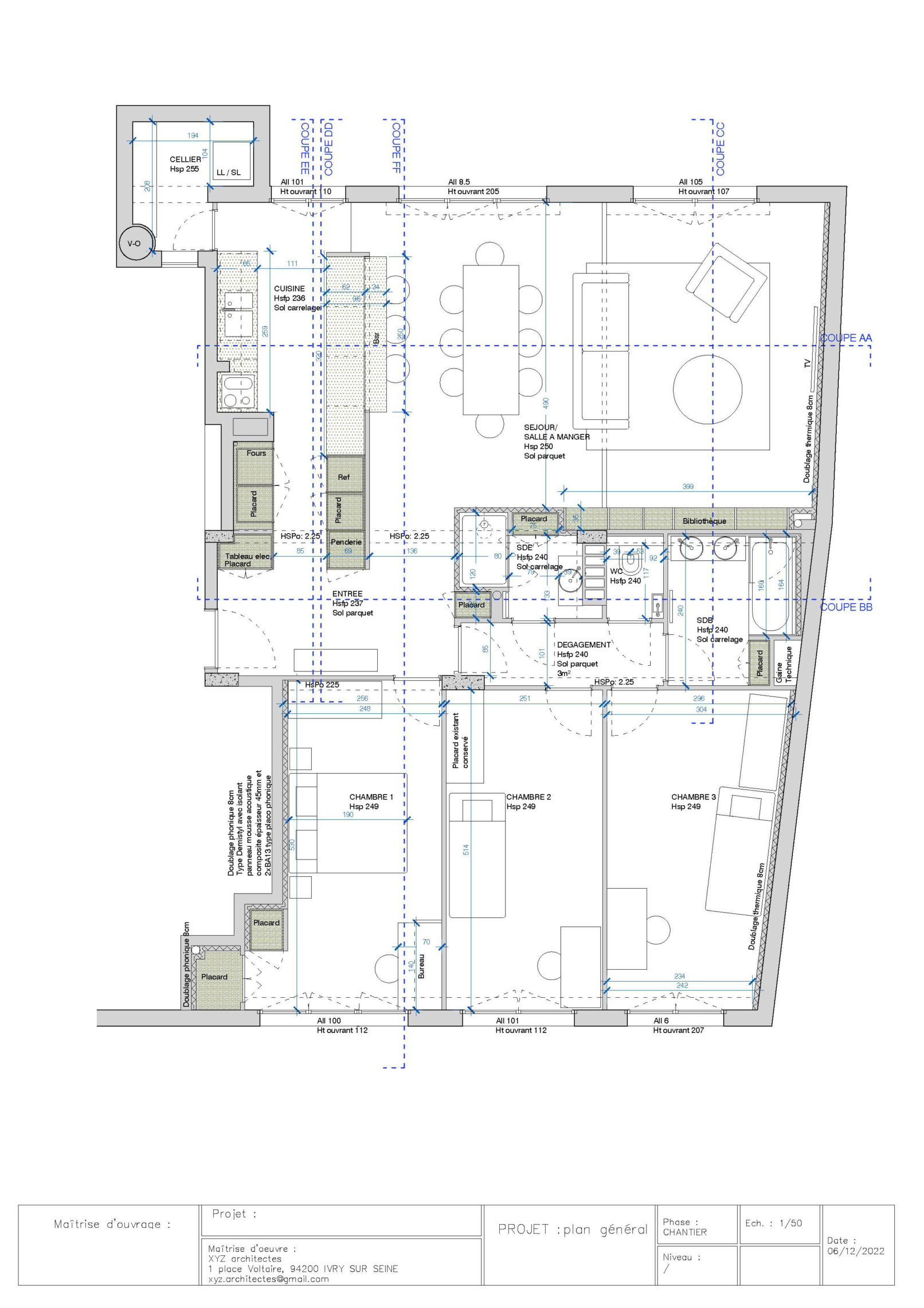 - Programme : Rénovation et réaménagement des espaces de l’appartement existant. Création d’une salle d’eau supplémentaire.