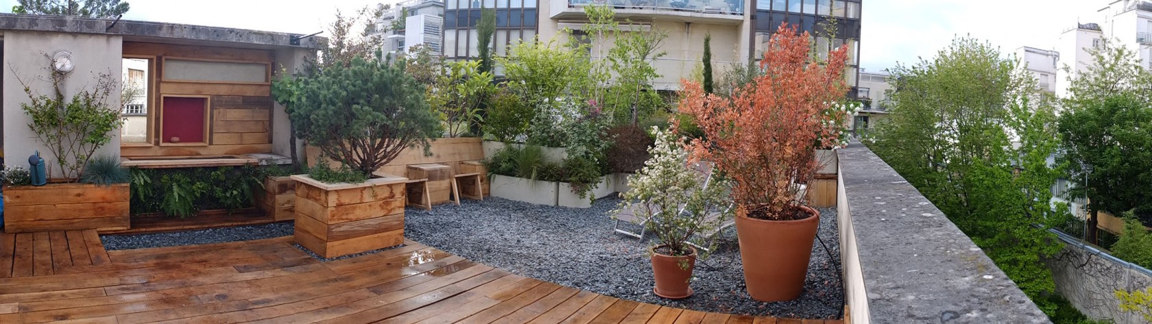 Programme : rénovation et mise en valeur de la toiture terrasse pour réceptions privées, végétalisation et traitement des sols.