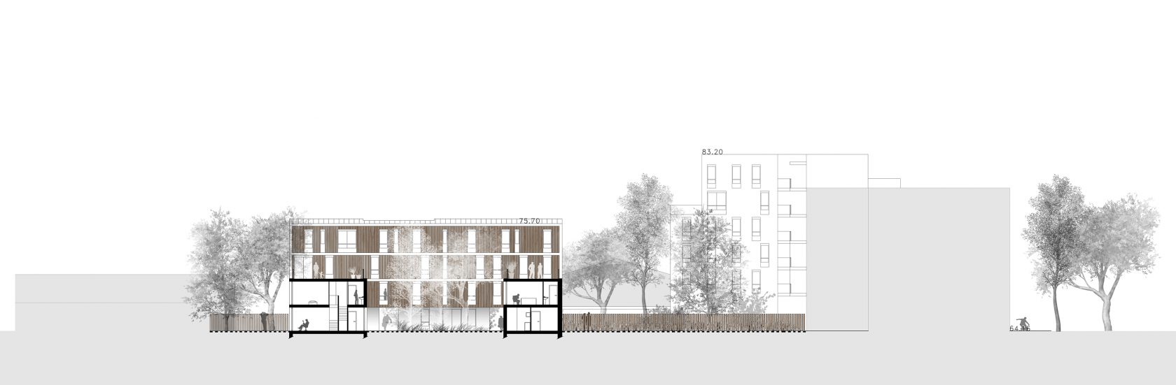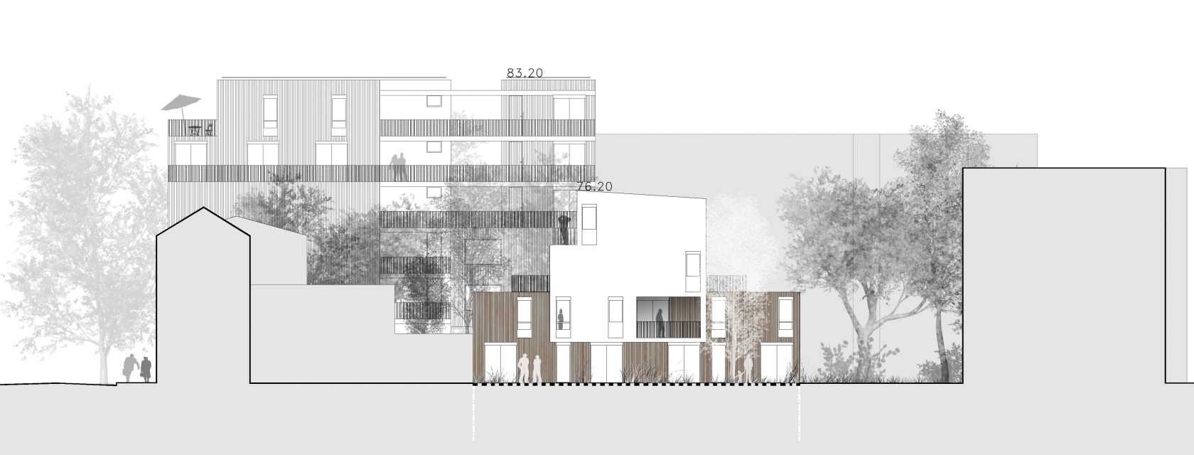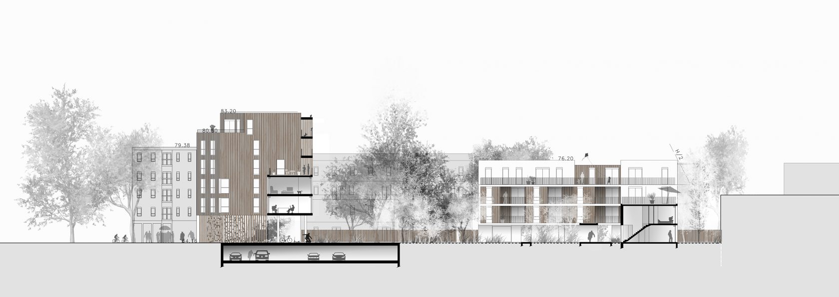 - Programme : 36 logements + surface commerciale + parking + jardin collectif