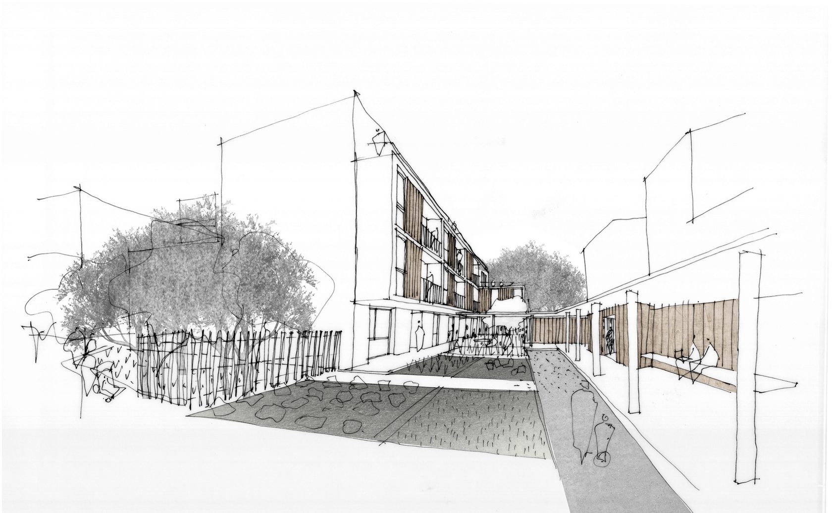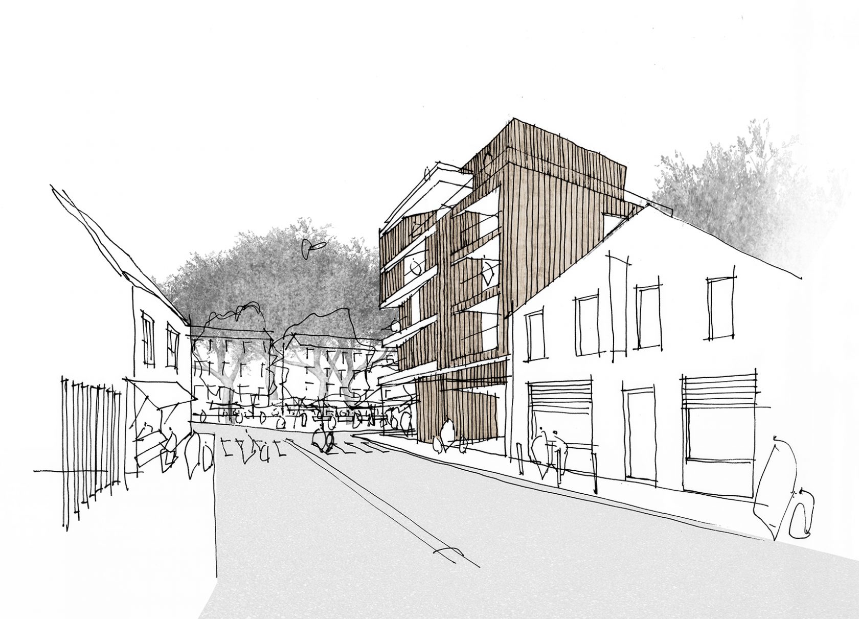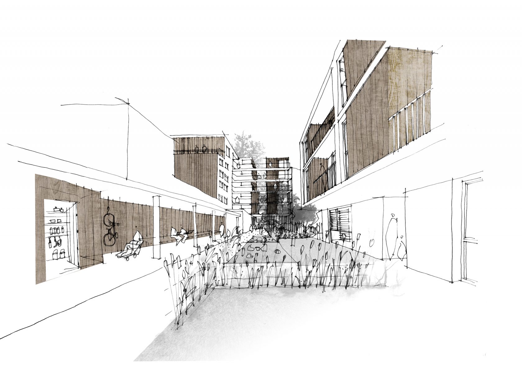 - Programme : 36 logements + surface commerciale + parking + jardin collectif