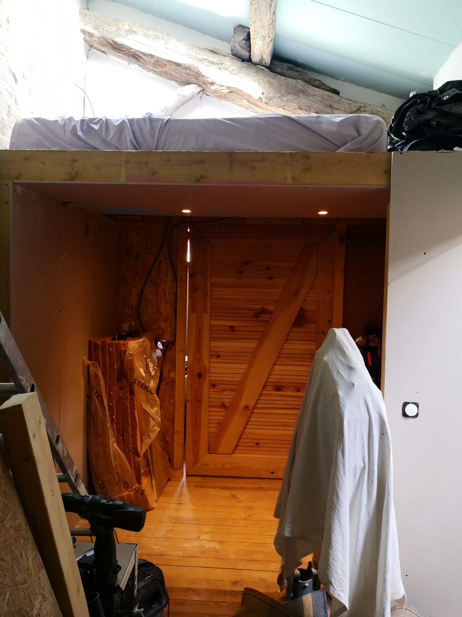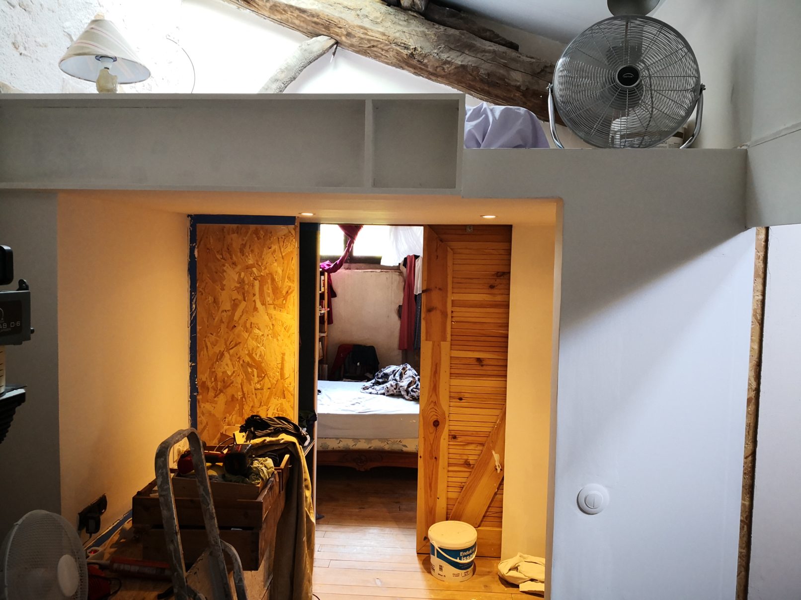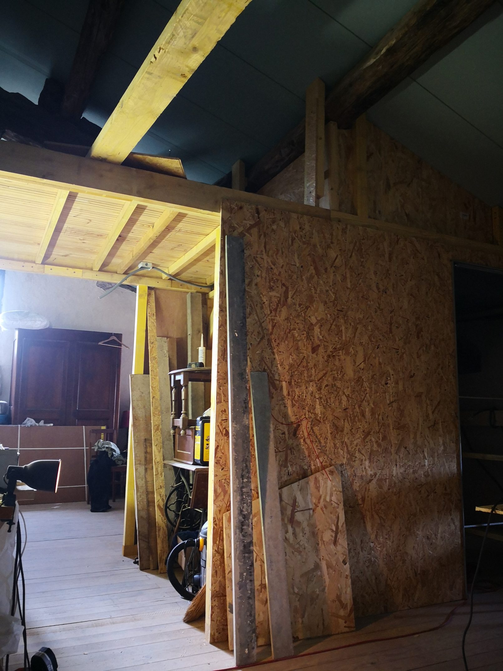 Programme : création de deux chambres, d’une mezzanine / couchage, création de deux salles de douche et d’une cuisine, reprise de la charpente et de la couverture.