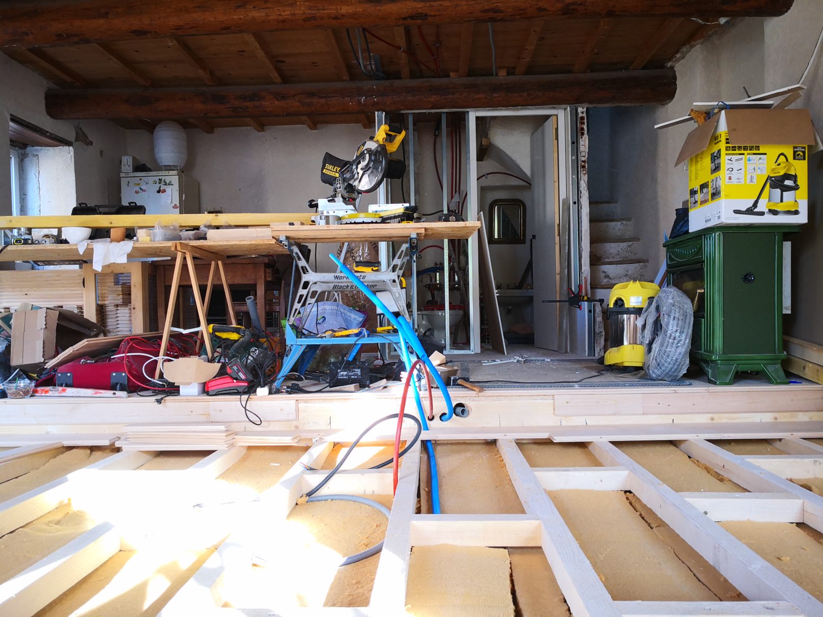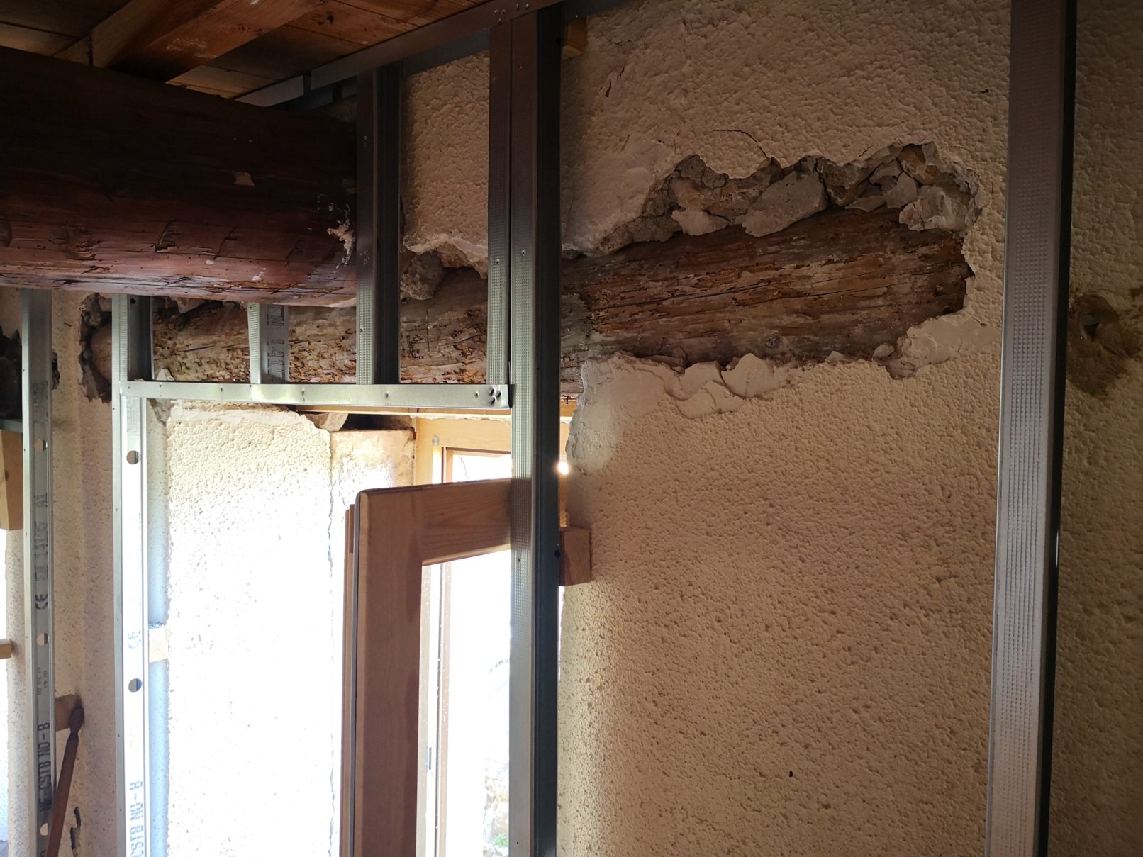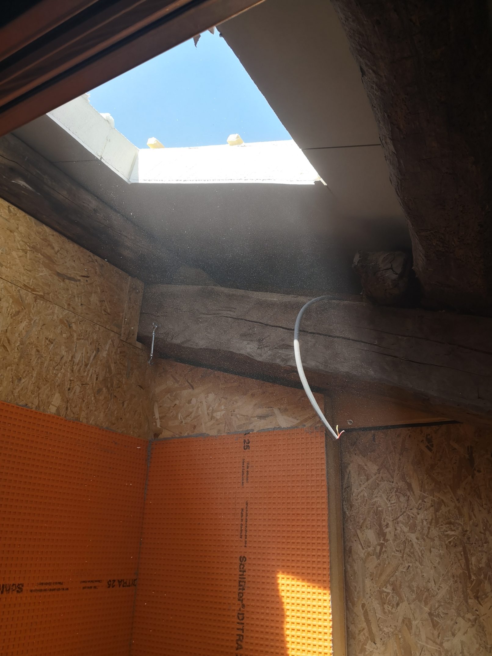 Programme : création de deux chambres, d’une mezzanine / couchage, création de deux salles de douche et d’une cuisine, reprise de la charpente et de la couverture.