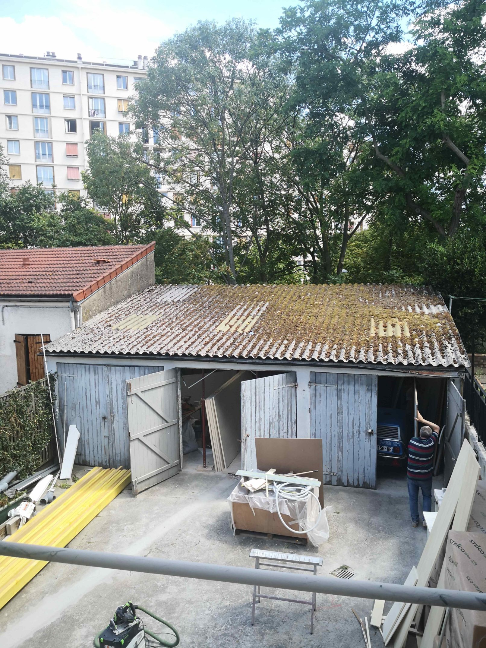 Rénovation d’une maison individuelle à Ivry-sur-Seine et de deux box. Reprise intégrale de la maison, création d’une série de deux studios et d’une terrasse de liaison.